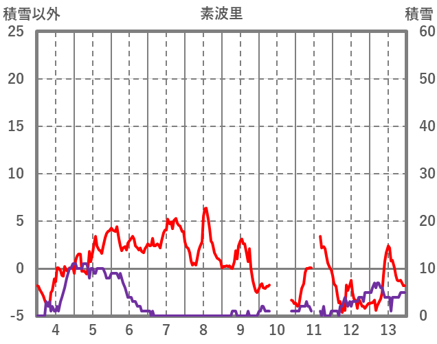 | 日 | 時 | 気温 | 降水 | 風向/風速 | 日照 | 積雪 | 降雪 |