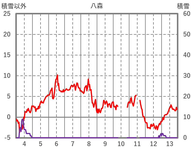 | 日 | 時 | 気温 | 降水 | 風向/風速 | 日照 | 積雪 | 降雪 |