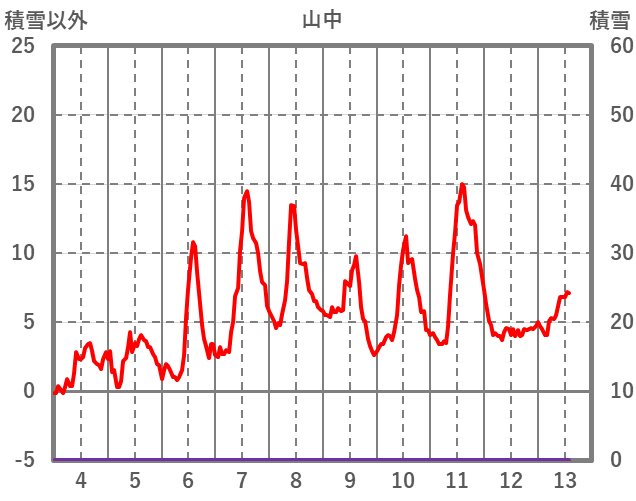 | 日 | 時 | 気温 | 降水 | 風向/風速 | 日照 | 積雪 | 降雪 |