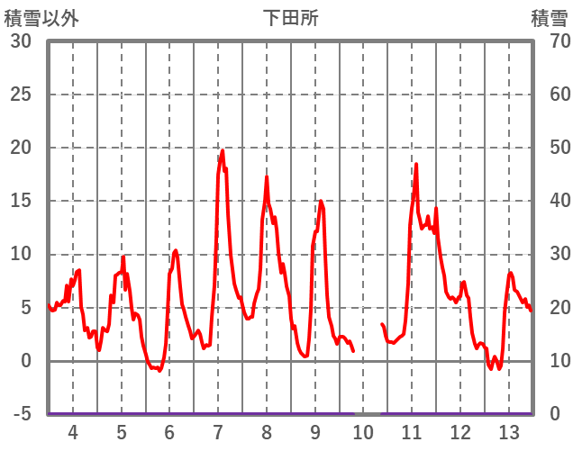 | 日 | 時 | 気温 | 降水 | 風向/風速 | 日照 | 積雪 | 降雪 |