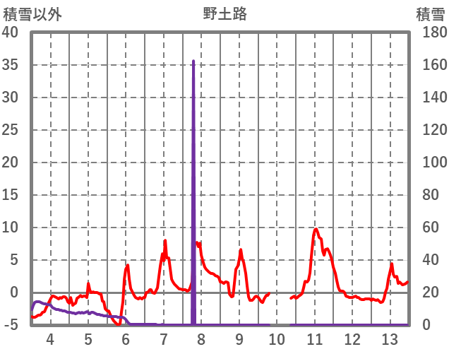 | 日 | 時 | 気温 | 降水 | 風向/風速 | 日照 | 積雪 | 降雪 |