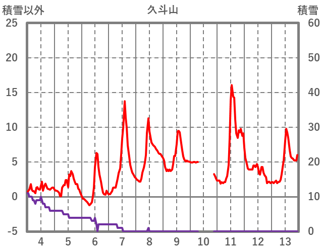 | 日 | 時 | 気温 | 降水 | 風向/風速 | 日照 | 積雪 | 降雪 |
