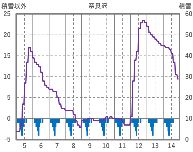 | 日 | 時 | 気温 | 降水 | 風向/風速 | 日照 | 積雪 | 降雪 |