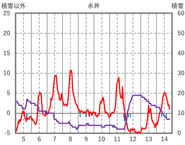 | 日 | 時 | 気温 | 降水 | 風向/風速 | 日照 | 積雪 | 降雪 |