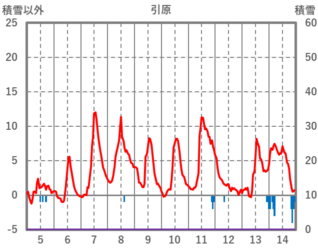 | 日 | 時 | 気温 | 降水 | 風向/風速 | 日照 | 積雪 | 降雪 |