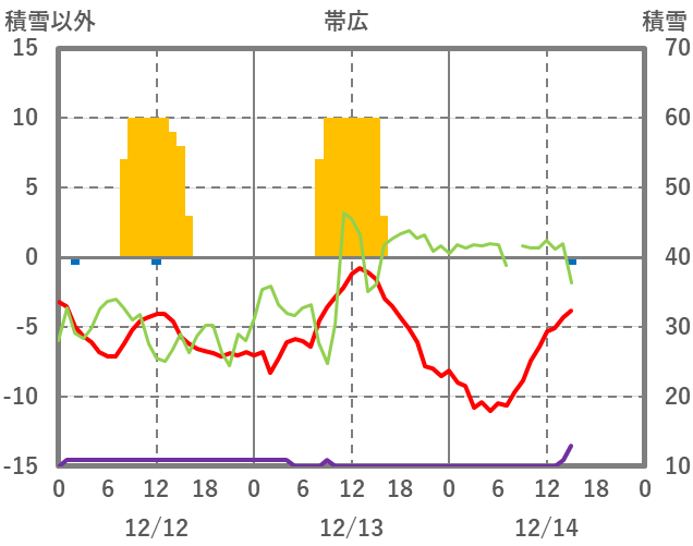 | 日 | 時 | 気温 | 降水 | 風向/風速 | 日照 | 積雪 | 降雪 |