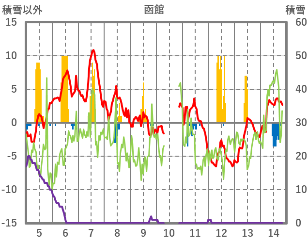 | 日 | 時 | 気温 | 降水 | 風向/風速 | 日照 | 積雪 | 降雪 |