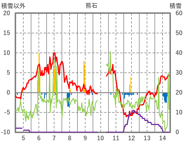 | 日 | 時 | 気温 | 降水 | 風向/風速 | 日照 | 積雪 | 降雪 |