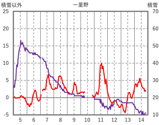 | 日 | 時 | 気温 | 降水 | 風向/風速 | 日照 | 積雪 | 降雪 |
