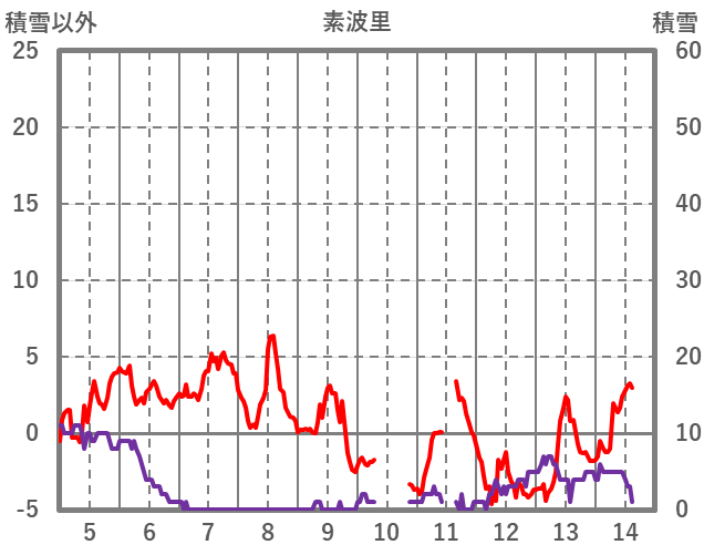 | 日 | 時 | 気温 | 降水 | 風向/風速 | 日照 | 積雪 | 降雪 |