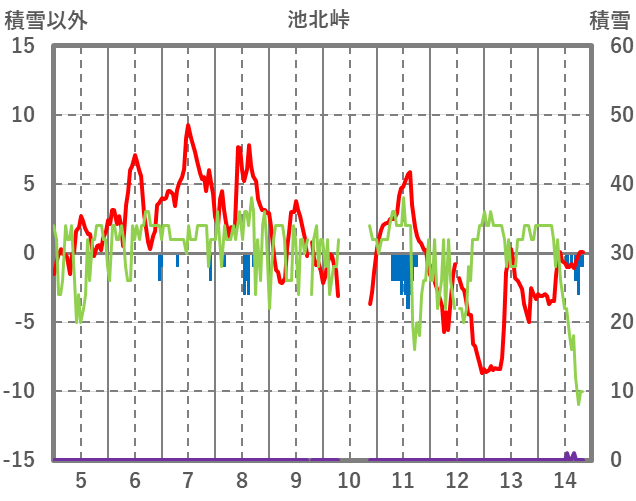 | 日 | 時 | 気温 | 降水 | 風向/風速 | 日照 | 積雪 | 降雪 |