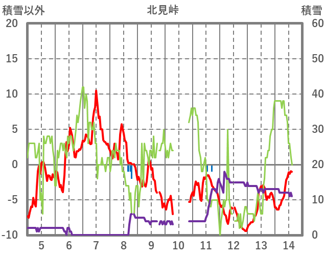 | 14 | -6.7 | 0 | WNW/8 | 15 | 0 | ||