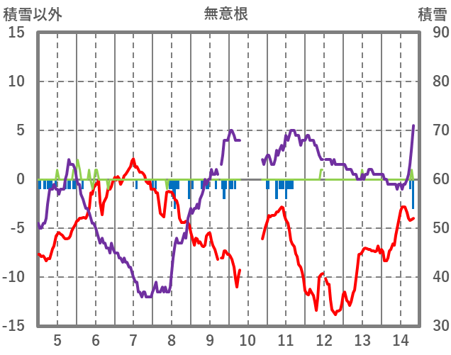 | 日 | 時 | 気温 | 降水 | 風向/風速 | 日照 | 積雪 | 降雪 |