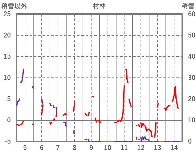 | 日 | 時 | 気温 | 降水 | 風向/風速 | 日照 | 積雪 | 降雪 |