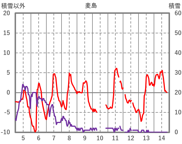 | 日 | 時 | 気温 | 降水 | 風向/風速 | 日照 | 積雪 | 降雪 |