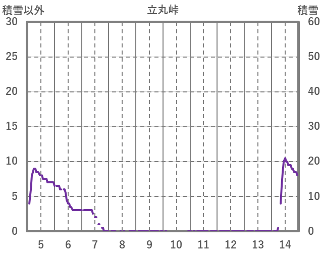 | 日 | 時 | 気温 | 降水 | 風向/風速 | 日照 | 積雪 | 降雪 |