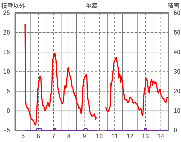 | 日 | 時 | 気温 | 降水 | 風向/風速 | 日照 | 積雪 | 降雪 |