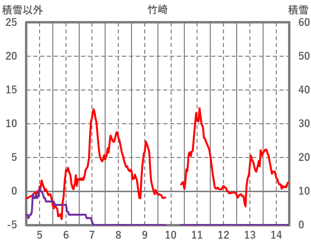 | 日 | 時 | 気温 | 降水 | 風向/風速 | 日照 | 積雪 | 降雪 |