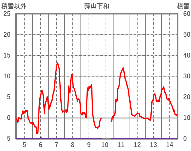 | 日 | 時 | 気温 | 降水 | 風向/風速 | 日照 | 積雪 | 降雪 |