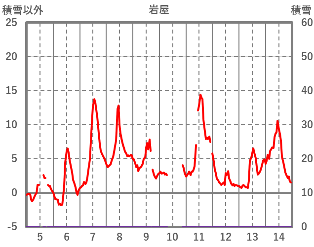 | 日 | 時 | 気温 | 降水 | 風向/風速 | 日照 | 積雪 | 降雪 |