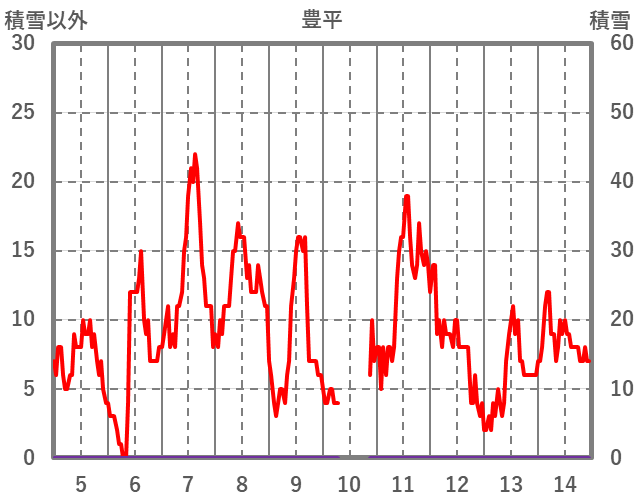 | 日 | 時 | 気温 | 降水 | 風向/風速 | 日照 | 積雪 | 降雪 |