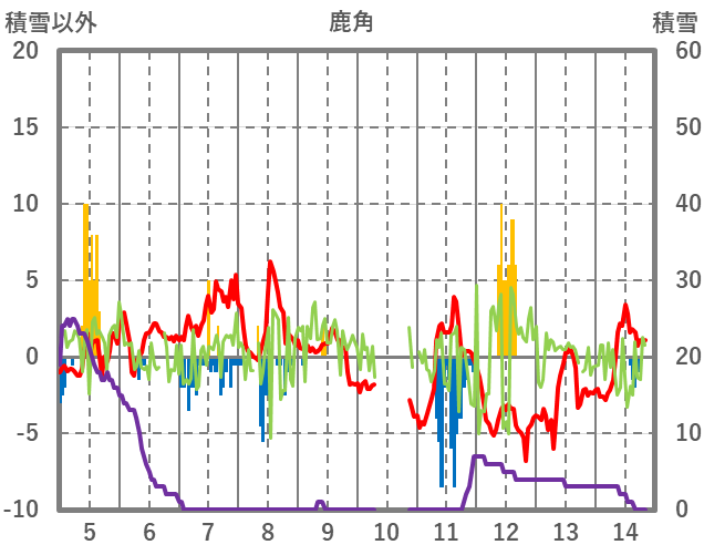 | 日 | 時 | 気温 | 降水 | 風向/風速 | 日照 | 積雪 | 降雪 |