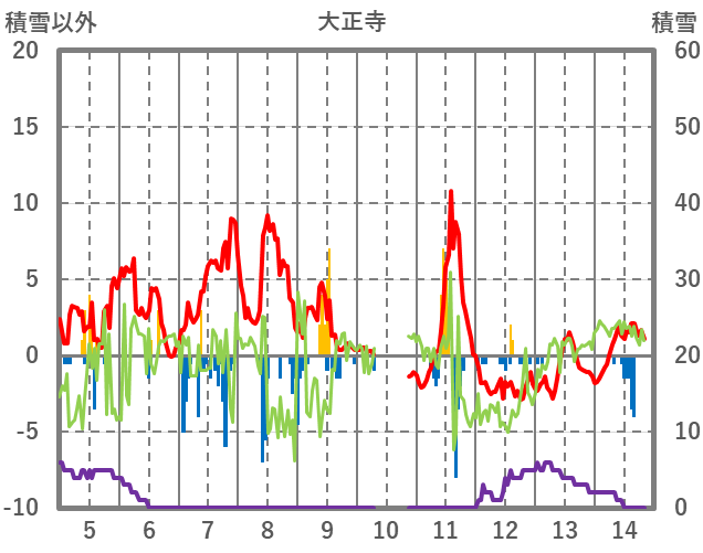 | 日 | 時 | 気温 | 降水 | 風向/風速 | 日照 | 積雪 | 降雪 |