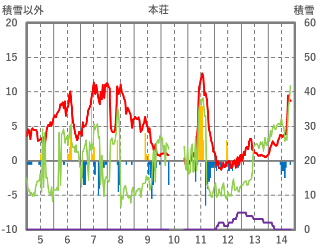 | 日 | 時 | 気温 | 降水 | 風向/風速 | 日照 | 積雪 | 降雪 |
