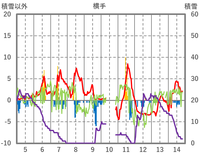 | 日 | 時 | 気温 | 降水 | 風向/風速 | 日照 | 積雪 | 降雪 |
