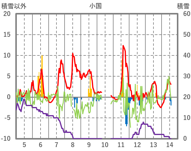 | 14 | -0.7 | 0.5 | NNW/6 | 6 | 2 | 0 | |