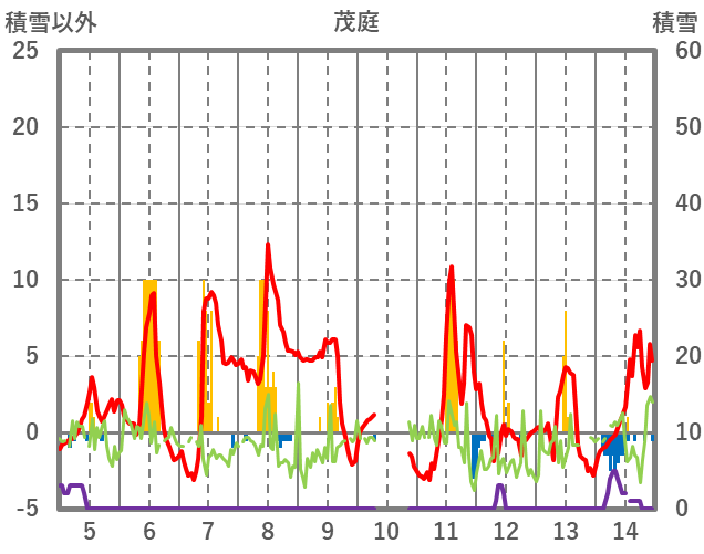 | 日 | 時 | 気温 | 降水 | 風向/風速 | 日照 | 積雪 | 降雪 |