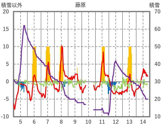 | 日 | 時 | 気温 | 降水 | 風向/風速 | 日照 | 積雪 | 降雪 |