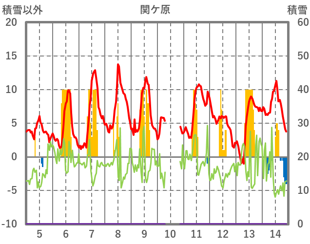 | 日 | 時 | 気温 | 降水 | 風向/風速 | 日照 | 積雪 | 降雪 |