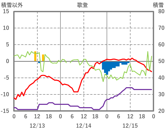 | 日 | 時 | 気温 | 降水 | 風向/風速 | 日照 | 積雪 | 降雪 |
