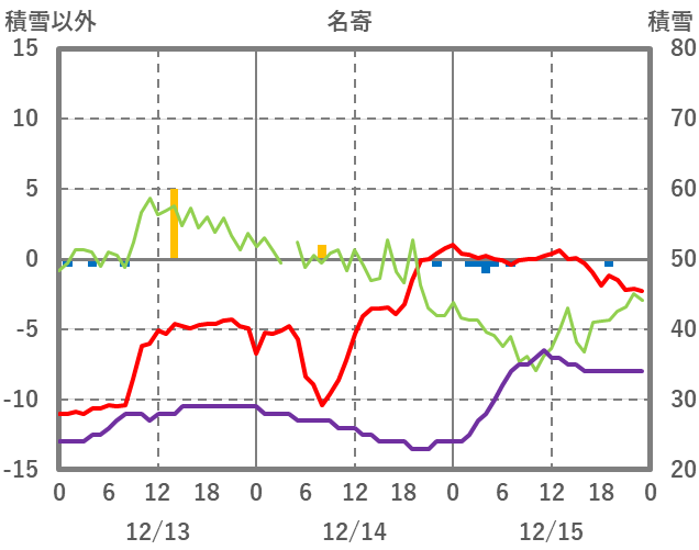 | 日 | 時 | 気温 | 降水 | 風向/風速 | 日照 | 積雪 | 降雪 |