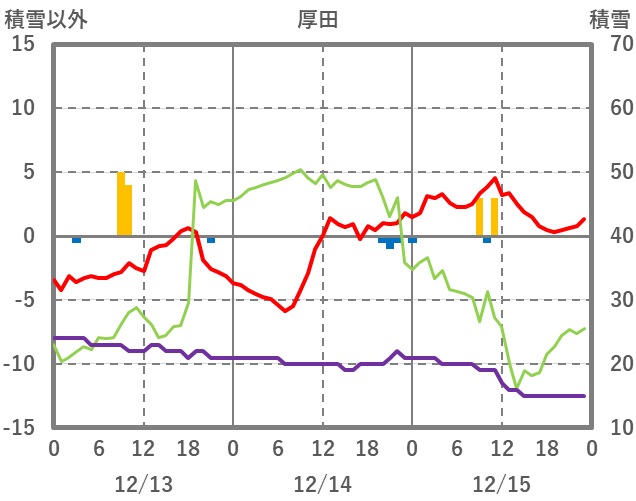 | 日 | 時 | 気温 | 降水 | 風向/風速 | 日照 | 積雪 | 降雪 |