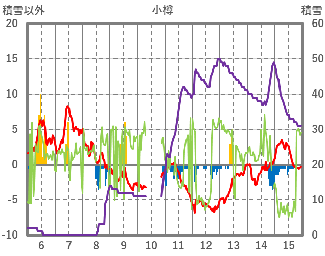 | 日 | 時 | 気温 | 降水 | 風向/風速 | 日照 | 積雪 | 降雪 |