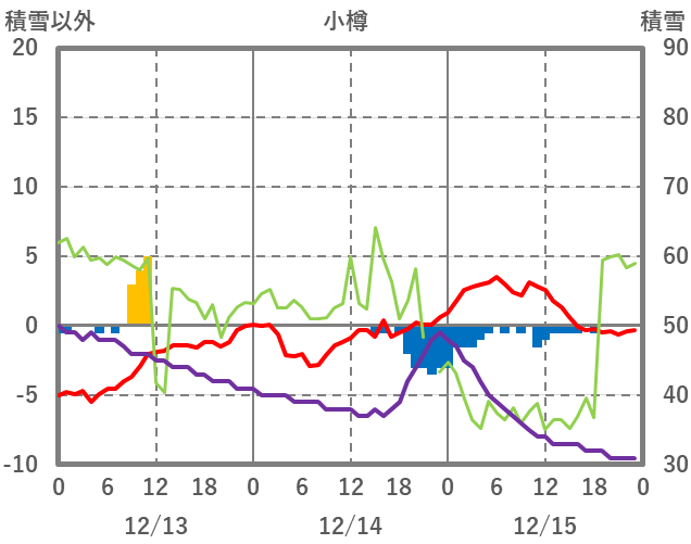 | 日 | 時 | 気温 | 降水 | 風向/風速 | 日照 | 積雪 | 降雪 |