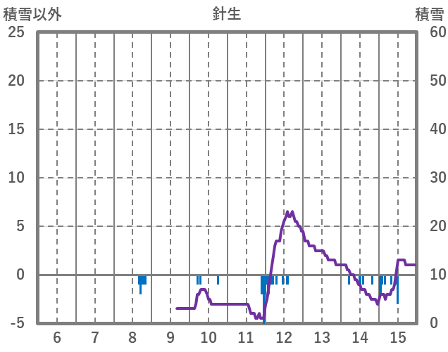 | 日 | 時 | 気温 | 降水 | 風向/風速 | 日照 | 積雪 | 降雪 |