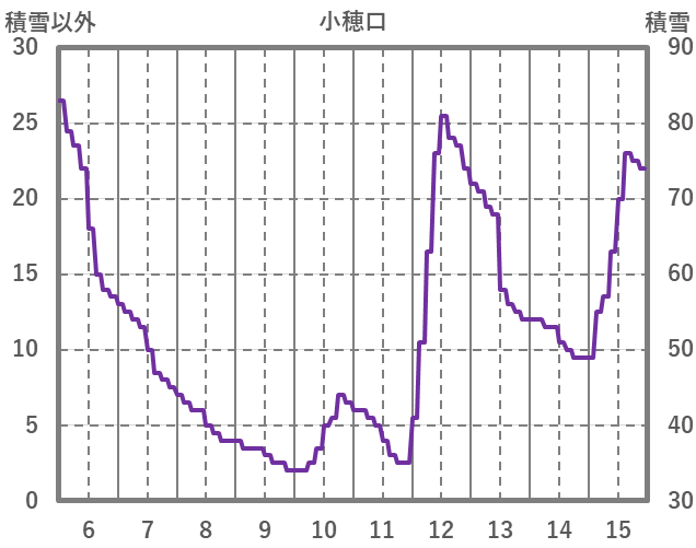 | 日 | 時 | 気温 | 降水 | 風向/風速 | 日照 | 積雪 | 降雪 |