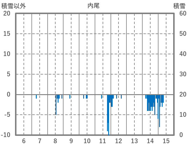| 日 | 時 | 気温 | 降水 | 風向/風速 | 日照 | 積雪 | 降雪 |
