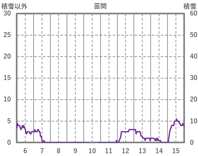 | 日 | 時 | 気温 | 降水 | 風向/風速 | 日照 | 積雪 | 降雪 |
