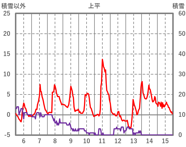 | 日 | 時 | 気温 | 降水 | 風向/風速 | 日照 | 積雪 | 降雪 |