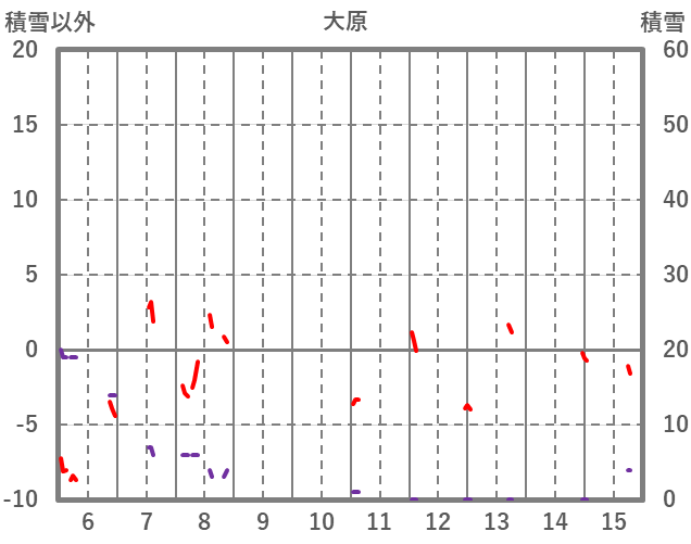 | 日 | 時 | 気温 | 降水 | 風向/風速 | 日照 | 積雪 | 降雪 |