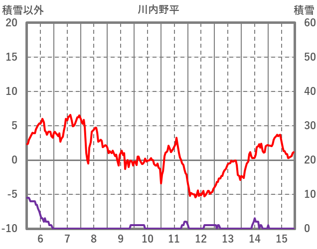 | 日 | 時 | 気温 | 降水 | 風向/風速 | 日照 | 積雪 | 降雪 |