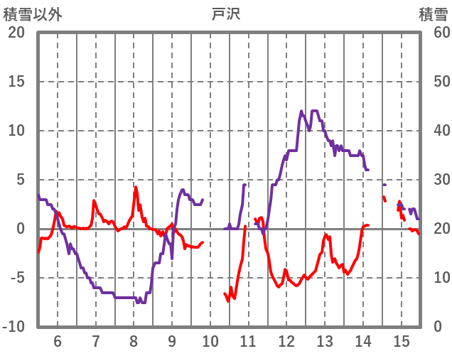 | 日 | 時 | 気温 | 降水 | 風向/風速 | 日照 | 積雪 | 降雪 |