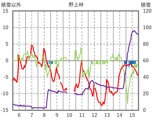 | 日 | 時 | 気温 | 降水 | 風向/風速 | 日照 | 積雪 | 降雪 |
