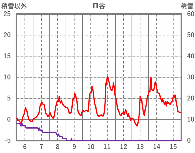 | 日 | 時 | 気温 | 降水 | 風向/風速 | 日照 | 積雪 | 降雪 |