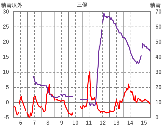 | 日 | 時 | 気温 | 降水 | 風向/風速 | 日照 | 積雪 | 降雪 |