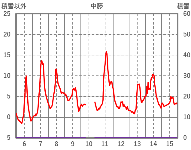 | 日 | 時 | 気温 | 降水 | 風向/風速 | 日照 | 積雪 | 降雪 |